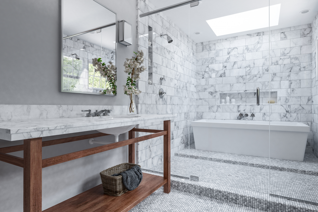 Enhance the look and durability of your bathroom with our expert tile and flooring installation services, offering a wide range of materials and styles to choose from.